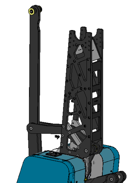 - Verbinden Sie den Tragarm mit dem Gestänge und ziehen Sie die Schrauben an (Vorsicht vor Quetschgefahr).