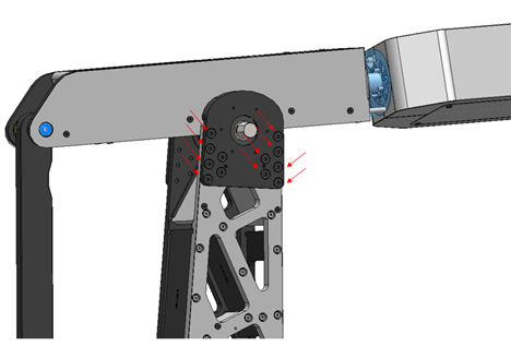 - Lösen Sie die Schrauben der beiden Flügel (Vorsicht! Der Tragarm ist jetzt frei vom Gesamtsystem) und nehmen Sie ihn nach oben heraus.