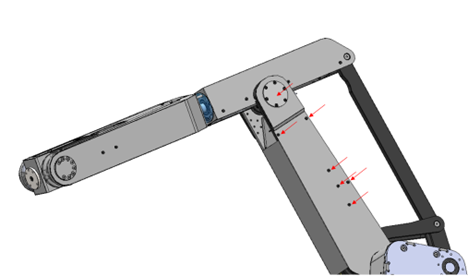 - Lösen Sie alle Schrauben der Schwenkarmverkleidung und nehmen Sie die Verkleidung vorsichtig ab.