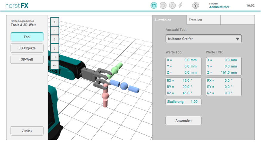 Im nächsten Schritt kann der ###TCP und dessen Orientierung angepasst werden.