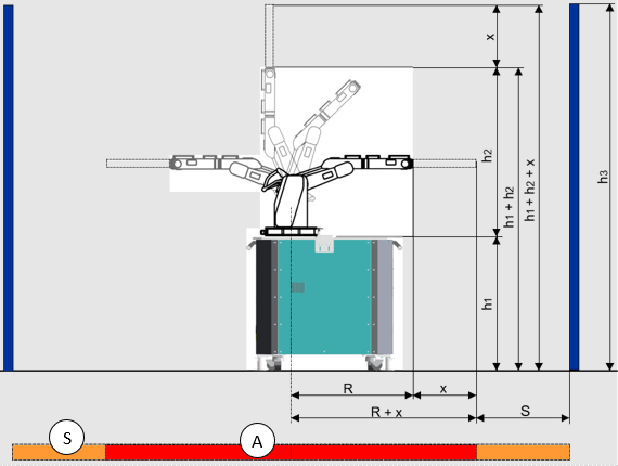 Wenn vom Hersteller der Montagezelle keine anderen Vorgaben angegeben werden, verwenden Sie die folgenden Angaben, um den Sicherheitsabstand S zu ermitteln