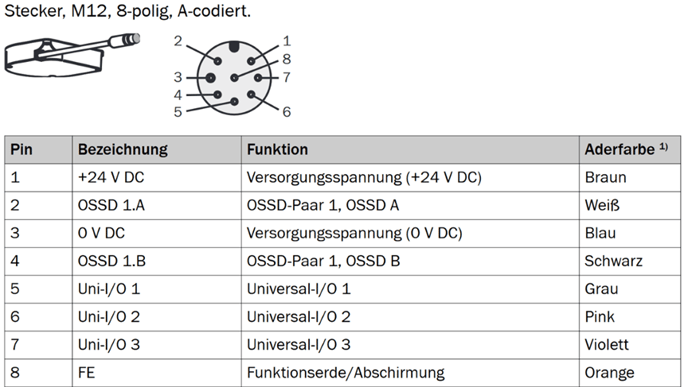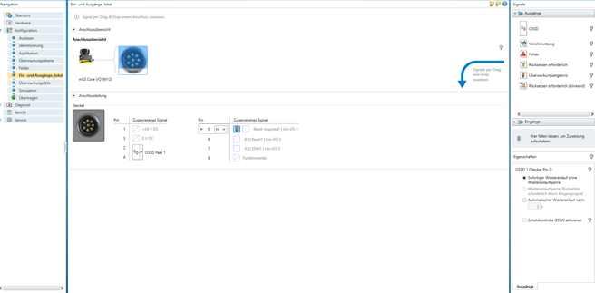 - Anschluss des OSSD-Paars 1 f�r das Schutzfeld (PIN 2 und Pin 4)