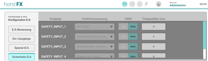 �ffnen Sie hierf�r horstFX unter Einstellungen > Konfiguration E/A > Sicherheits- E/As.