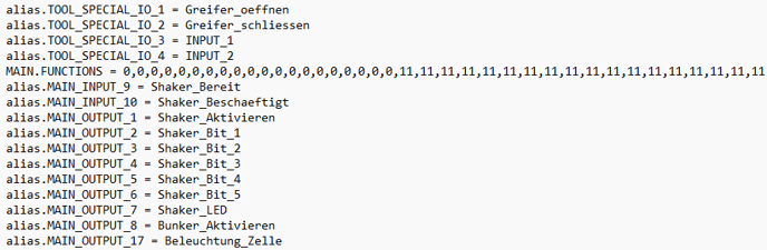 - Sofern Sie die bereitgestellten Dateien als Grundlage f�r Ihr eigenes Programm nutzen m�chten, sollten Sie die Bezeichnung der Ein-/Ausg�nge aus der Konfigurations-Datei: "PartSeparation_2311_public_2.io" �bernehmen. Die Datei liegt im Ordner ioconfig ab. F�r Produkte von fruitcore robotics sind diese Bezeichnungen ab Werk eingestellt.