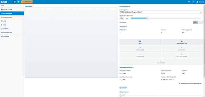 Sobald die Kamera ausgerichtet ist, muss diese Kalibriert werden.
