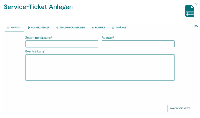 Falls Sie einen Servicefall mit Ihrem Robotersystem haben, ist es sinnvoll Serviceticket zu erstellen