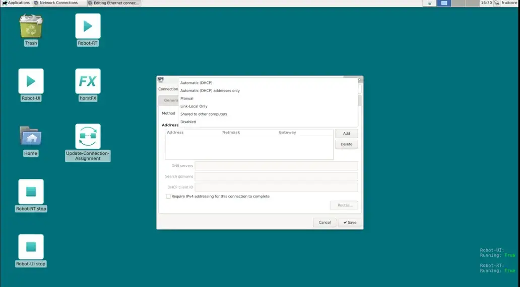 Standardm��ig erwartet der Roboter, dass ihm eine IP-Adresse �ber DHCP zugeteilt wird. Bietet das externe Ger�t dies allerdings nicht an, so kann die IP-Adresse des Roboters ge�ndert werden. In dieser Anleitung werden die n�tigen Schritte daf�r beschrieben. Die Einrichtung muss nur einmalig vorgenommen werden.