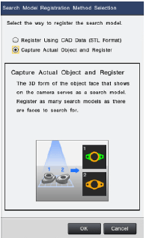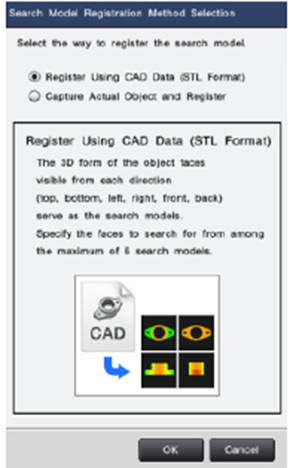 Die zu erkennenden Werkst�cke k�nnen entweder als STL-File oder optisch eingelernt werden. F�r das optische Einlernen werden die Werkst�cke in verschiedenen Positionen unter die Kamera gelegt und automatisch erkannt.