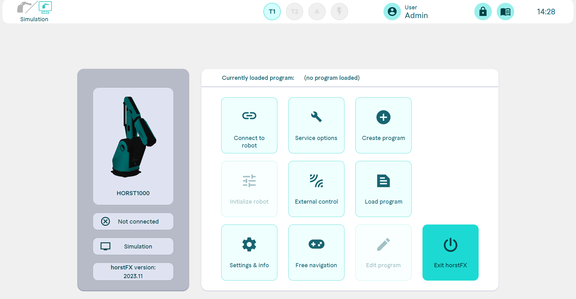 To switch to the desktop, simply click on the "Exit" button in the horstFX application. Alternatively, you can use the keyboard shortcut +