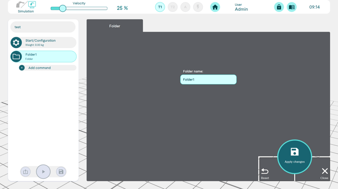 Any number of commands can be grouped together using the Create folder command. This increases the clarity of the programme and the entire folder can be moved so that not every command in it has to be moved individually.