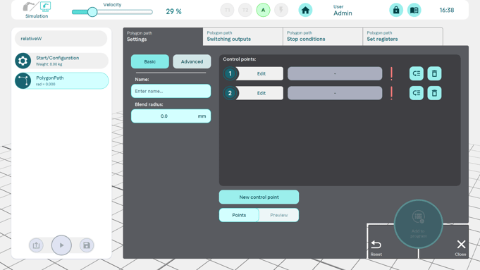 The interpolation points can be defined in the Settings tab, as can the overshoot radius valid for all.