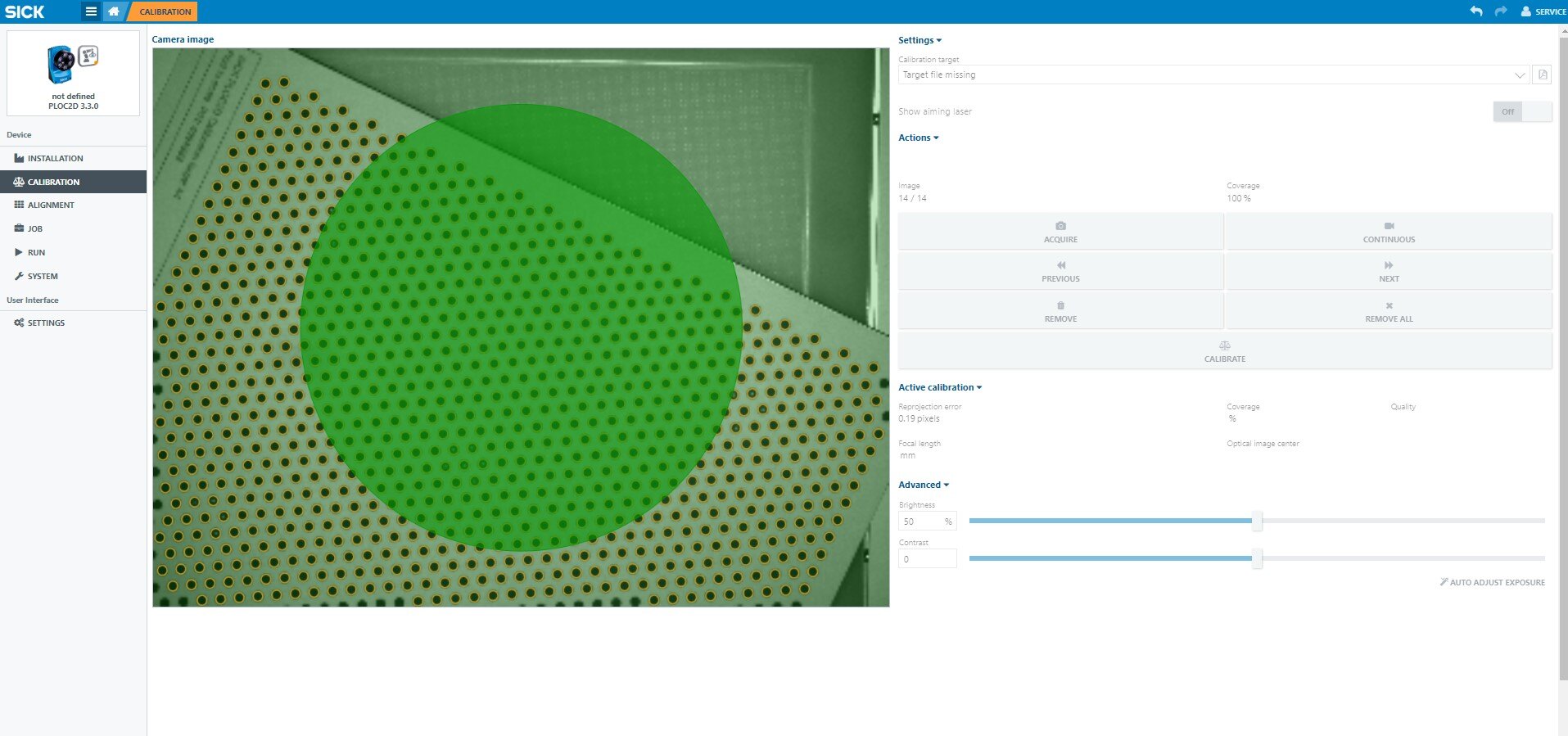 Navigate to the "Alignment" section on the web interface of the SICK PLOC2D.