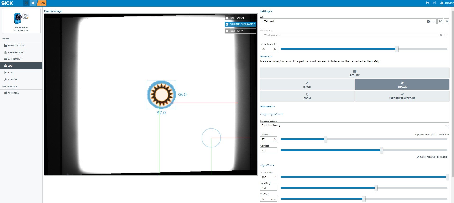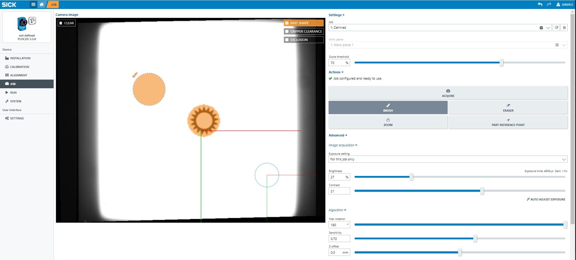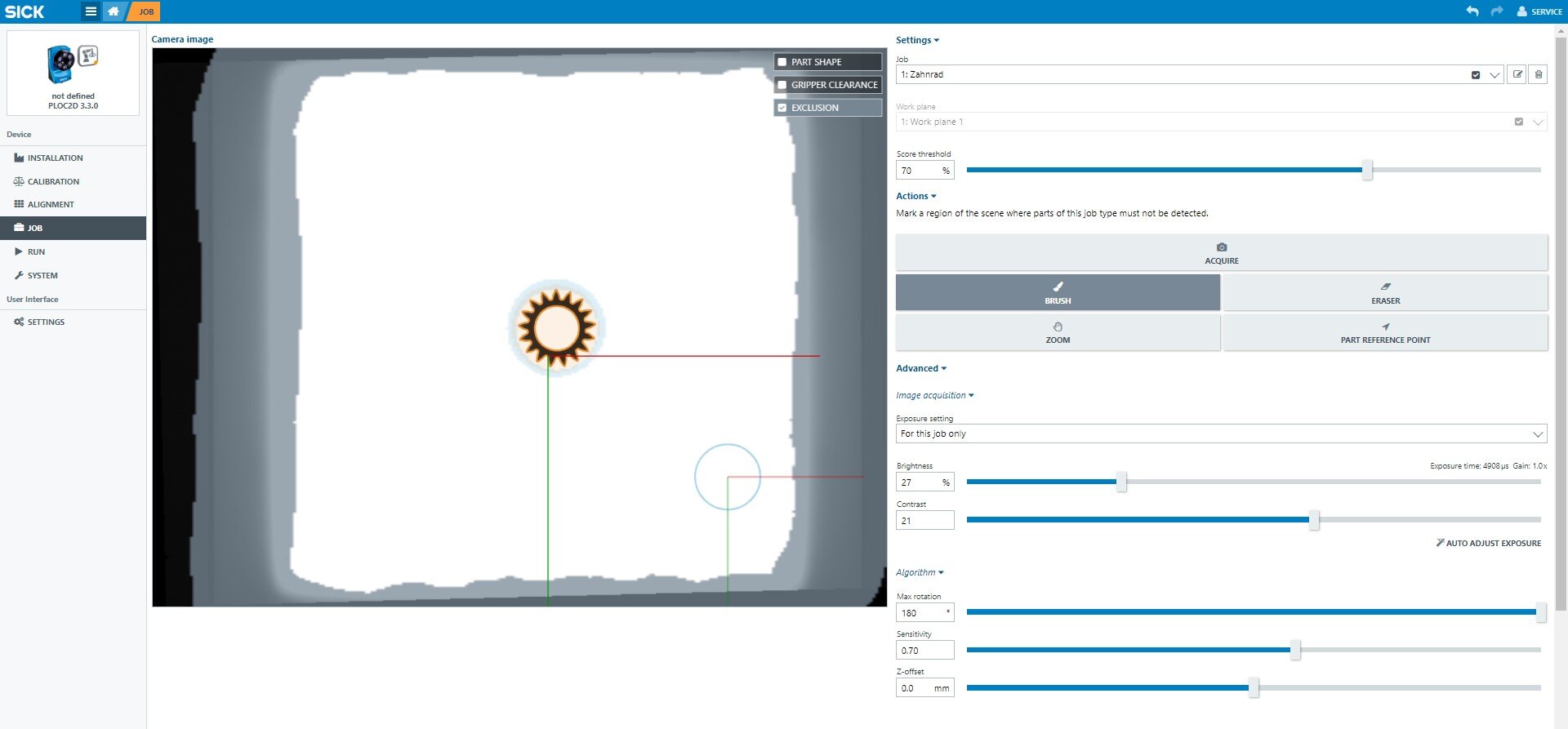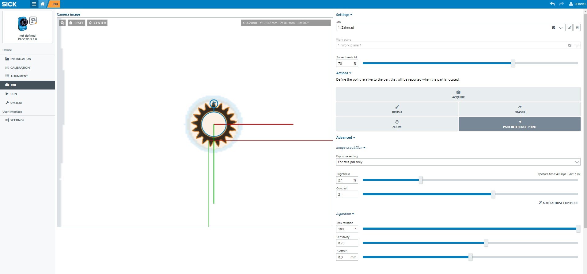 For more information about the SICK PLOC2D camera, see SICK user information.
