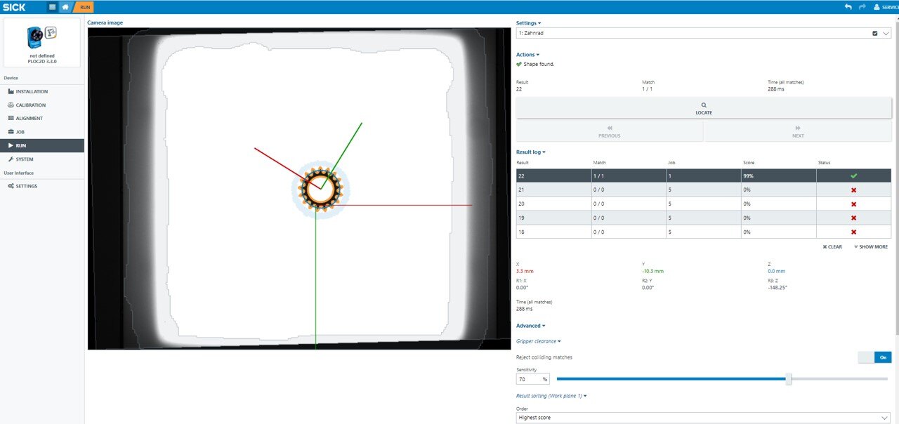 The sensor system can either be permanently mounted next to the robot or mounted directly on the flange of the robot using a suitable bracket. In the following article, the sensor system is set up and calibrated. Subsequently, a part localization with gear wheels is carried out.