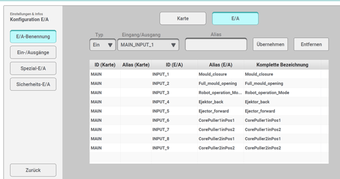 Starting from the software version horstFX 2021.10, it is now possible to name the inputs and outputs in horstFX to directly match the labels of the EUROMAP interface.
