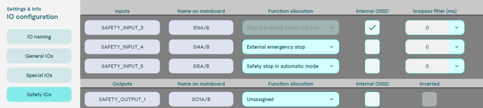 Configuring safety inputs in horstFX (when using Internal OSSD TA/TB, terminal X4)