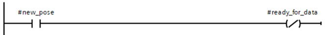 This checks whether the last pose passed was read in by horstFX (#new_pose=false). If this is the case, the output variable #ready_for_data is set. New poses can now be transferred from the PLC, even while the robot is still moving to the last transferred pose.
