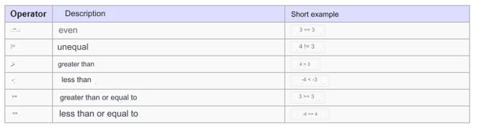 Comparison operators can be used to compare two variables/values etc. The result is the value TRUE/False.