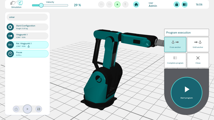 The user-specific operating view is a very simplified version of the normal programming view. The content of the loaded programme can neither be viewed nor edited here, only the programme can be executed. It is intended exclusively for use by the Operator user role and can only be used in this role.