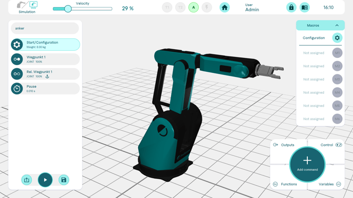 A function consists of several command s. Functions are used to group recurring command s and combine them in a programme block. This keeps the programme tree clearer and makes it easier to create a programme if the same command s are to be executed frequently.