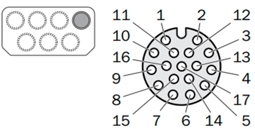 Pin assignment of local inputs and outputs 1 (socket, M12, 17-pin, A-coded)