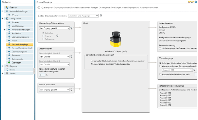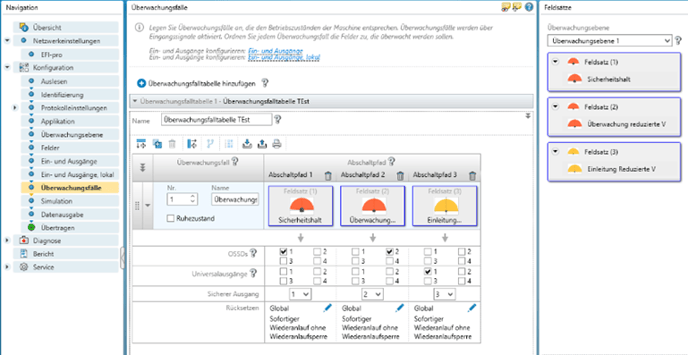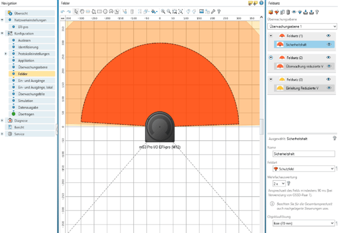 In the next step, the safety scanner is configured on the software side and the required safety ranges are set. These safety areas depend on the other safety devices that are used in combination with the scanner.