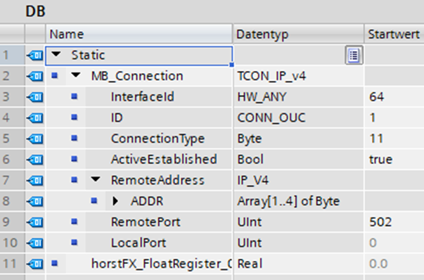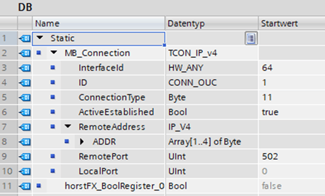 The parameters for establishing the connection can be found under the variable MB_Connection.