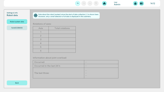 The robot system data displays information on the running performance of the individual axes and on errors that have led to a Category 1 stop.